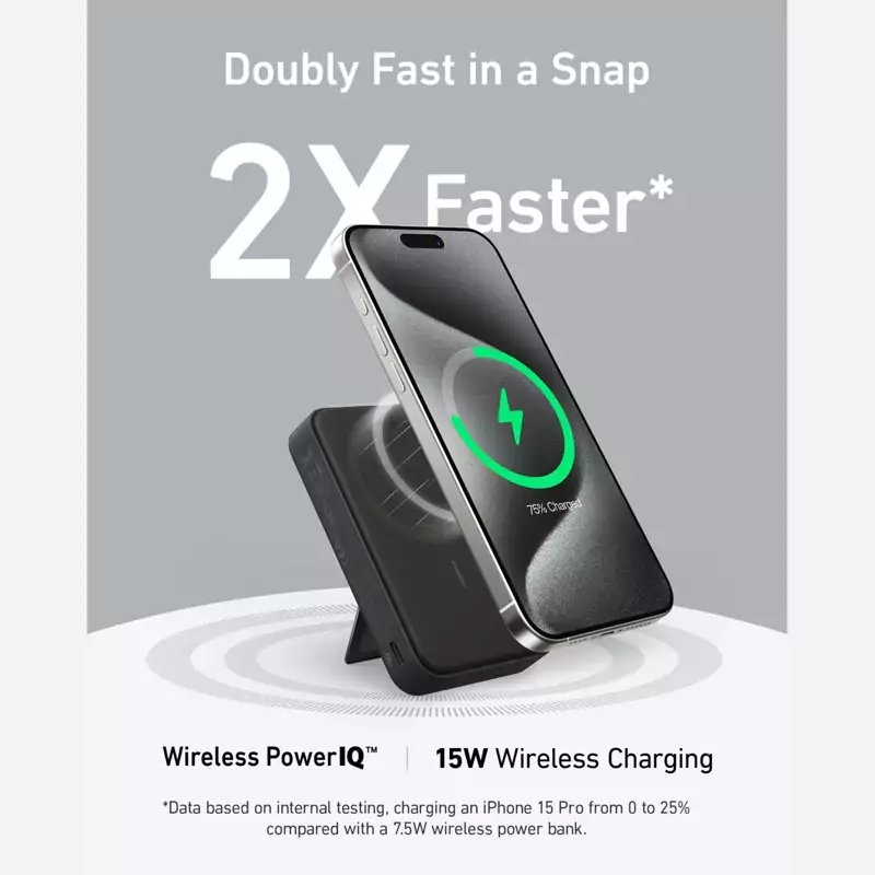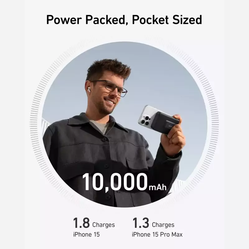 ظرفیت بالا: با ظرفیت 10000 میلیآمپر ساعت، میتوانید به راحتی 2 تا 3 مرتبه گوشی هوشمند خود را شارژ کنید. شارژ بیسیم سریع: از فناوری Qi2 برای شارژ بیسیم سریع تا 15 وات پشتیبانی میکند. سازگار با MagSafe: به طور خاص برای iPhone 12 و مدلهای جدیدتر طراحی شده است و به شما امکان میدهد بدون نیاز به کابل، گوشی خود را به طور مغناطیسی شارژ کنید. پایه تاشو: دارای یک پایه تاشو داخلی است که میتوانید از آن برای تماشای ویدیو یا استفاده از تلفن خود در حالت هندزفری استفاده کنید. صفحه نمایش هوشمند: صفحه نمایش LED تعبیه شده در این محصول، میزان شارژ باقیمانده و وضعیت شارژ را نشان میدهد. ایمنی: از فناوریهای پیشرفته Anker Power iQ 2.0 برای محافظت از دستگاههای شما در برابر گرم شدن بیش از حد، اتصال کوتاه و نوسانات جریان استفاده میکند. پورت USB-C: به شما امکان میدهد علاوه بر شارژ بیسیم، دستگاههای خود را با کابل USB-C با سرعت 27 وات نیز شارژ کنید.