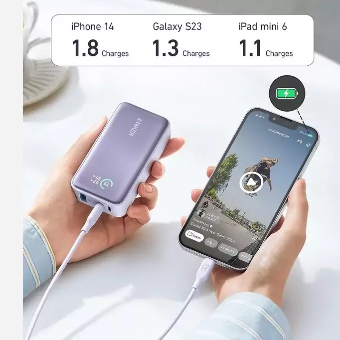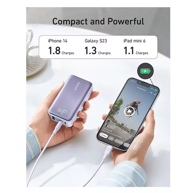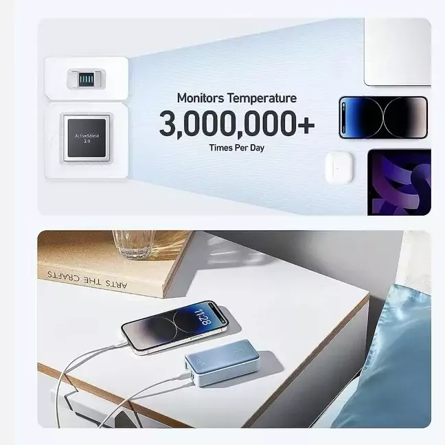ساخته شده در 5 رنگ متنوع پشتیبانی از قابلیت شارژ سریع Power Delivery ظرفیت باتری 10000 میلی آمپری مجهز به فناوری حفاظتی Power iQ 4.0 با حداکثر ایمنی برای هر دستگاه دارای نمایشگر LCD هوشمند مجهز به فناوری ActiveShield 2.0 برای کنترل دما قابلیت کنترل دما دستگاه تا 3 میلیون مرتبه در روز بهره گیری از باتری لیتیوم یونی مناسب برای تمامی تلفنهای هوشمند، تبلت و هندزفری توانایی شارژ دستگاه آیفون 14 تا دو مرتبه