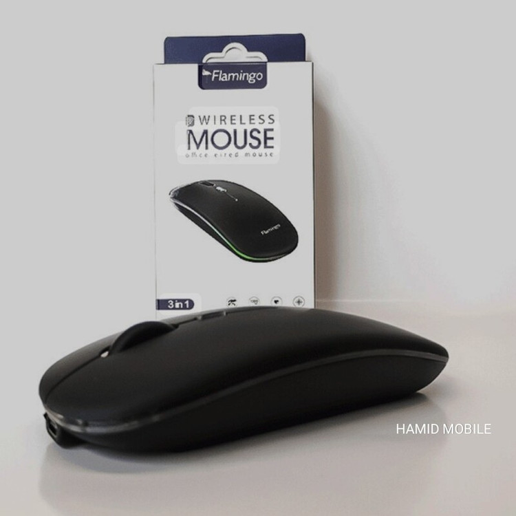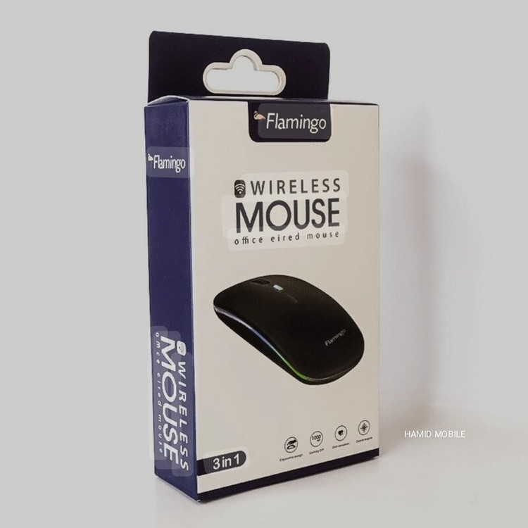 سایر توضیحات:موس بیسیم Flamingo 3in1|اتصال با دانگل و بلوتوث همراه دانگل بلوتوث سازگار با تمامی سیستم عامل های ویندوز و مک طراحی ارگونومیک و زیبا دقت 1000 DPI اتصال از طریق دانگل و بلوتوث